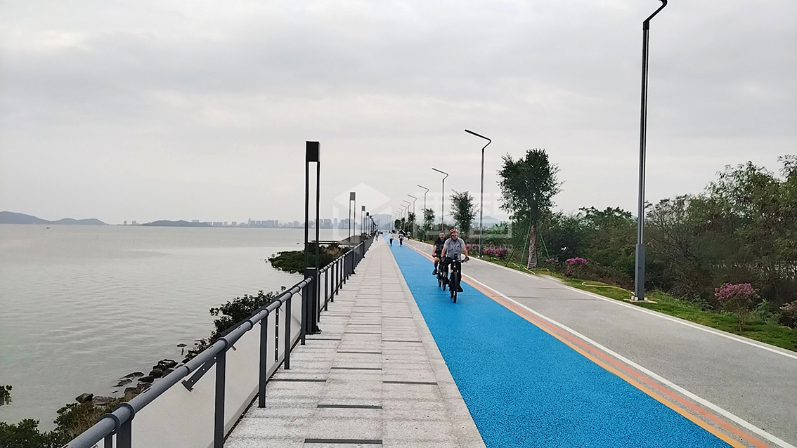 项目以品清湖南岸8.83km海堤路为依托,构建“一带一中心六村、两道四区、四营地、七入口、六节点”的规划布局,即建立一个品清湖文旅集散中心、对接沿岸六条村庄,形成以海堤路为基础的漫步运动慢行道、县道131为基础的旅游快行道两道为主要脉络,形成生态休闲游憩区、生态修复研学区、生态文旅发展区、生态科普展示区四个主要功能分区,结合道路关系形成七个出入口交通对接,打造六个重要景观节点。实现品清湖北岸与东岸、南岸全面贯通,形成39公里环品清湖绿廊碧带,展现亲水、生态、畅行、共享、优质的城市空间。