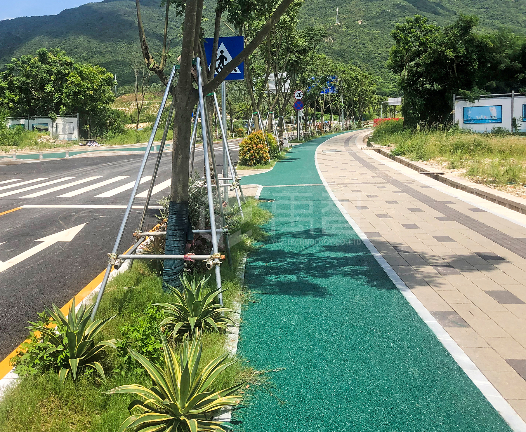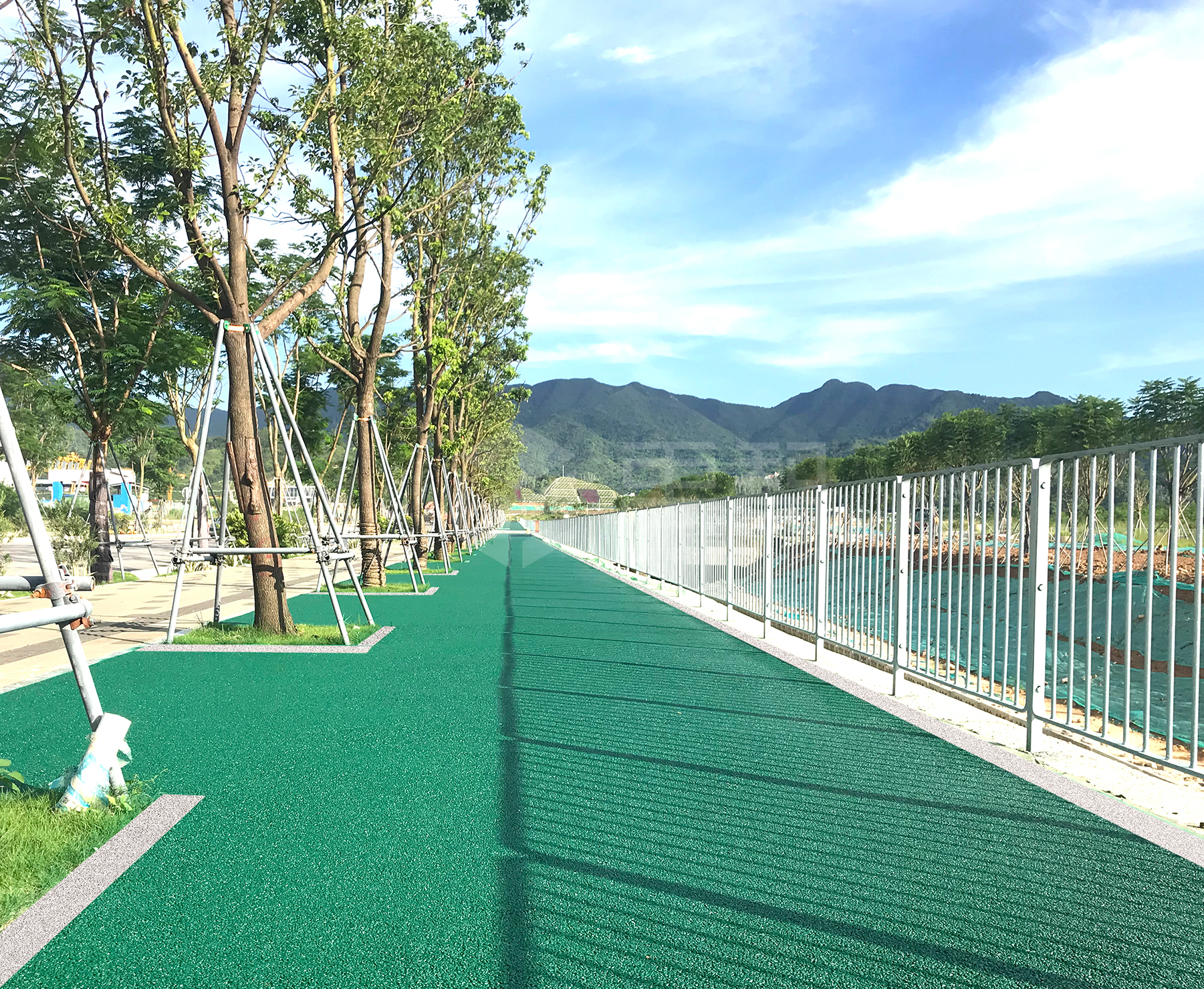 项目位于深圳市大鹏新区,被定位为国际领先的生物科技创新中心、全球知名的生物产业集聚基地,是广东省委省政府确定的“广深科技创新走廊”十大创新平台之一。其坝光核心启动区规划面积31.9平方公里,属于深圳海绵城市建设24个近期建设重点区域,也是大鹏新区唯一一个海绵城市近期建设重点区域。公司采用冷铺型高粘透水彩色沥青新材料,承建自行车道超过2万㎡。