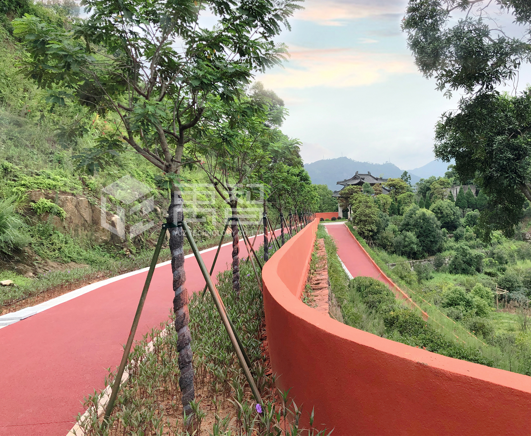 项目位于宁德蕉城区北部,规划定位为以森林生态景观与人文景观资源为基础,山、海、城景观相融,具风景名胜区特点的城市山地公园。我司为其打造园区整体透水道路,包括南广场、停车场、主园路、山顶广场。